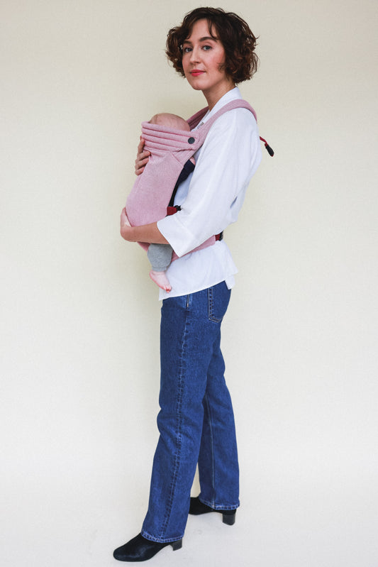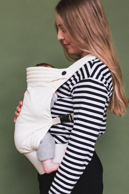 We use 100% organic cotton (GOTS-certified) for all our carriers to ensure comfort for your baby and you.